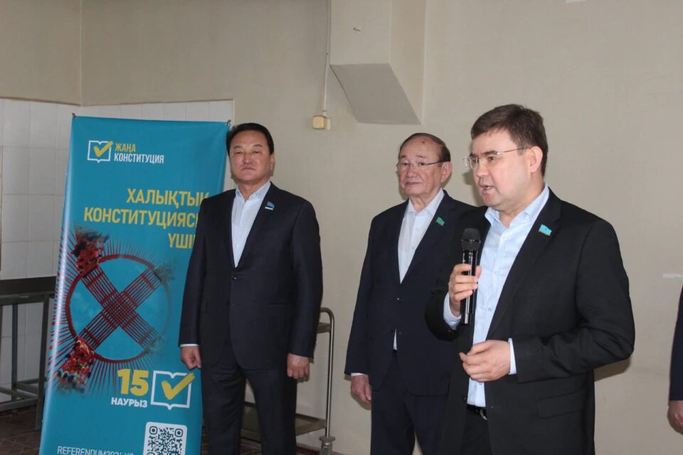 🔹Конституция кепілдік беретін тұрақтылық пен заң үстемдігі өндірістік процестердің үздіксіздігі мен заңдылығын қамтамасыз етуге мүмкіндік беретіні туралы және Ата заңның еңбеккерлердің құқықтары мен әлеуметтік кепілдіктерін күшейтуге ықпалы жөнінде Парламент Сенатының депутаттары Мұрат Қадырбек пен Алишер Сатвалдиев ақпарат берді. Түркістан облыстық мәслихатындағы фракция жетекшісі Алтынсары Үмбетәлиев референдум мемлекеттік шешімдер қабылдау үдерістеріне азаматтардың қатысуына жол ашқан демократиялық процесс екенініне назар аударды. Кездесулерде коалиция мүшелері жұмысшылар қойған сауалдарға жауап беріп, пікір алмасты.